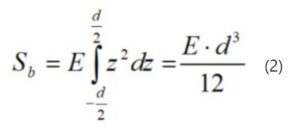 A resistência do cartão à flexão, ‘Sb’, é calculada a partir da expressão padrão para uma viga uniforme: